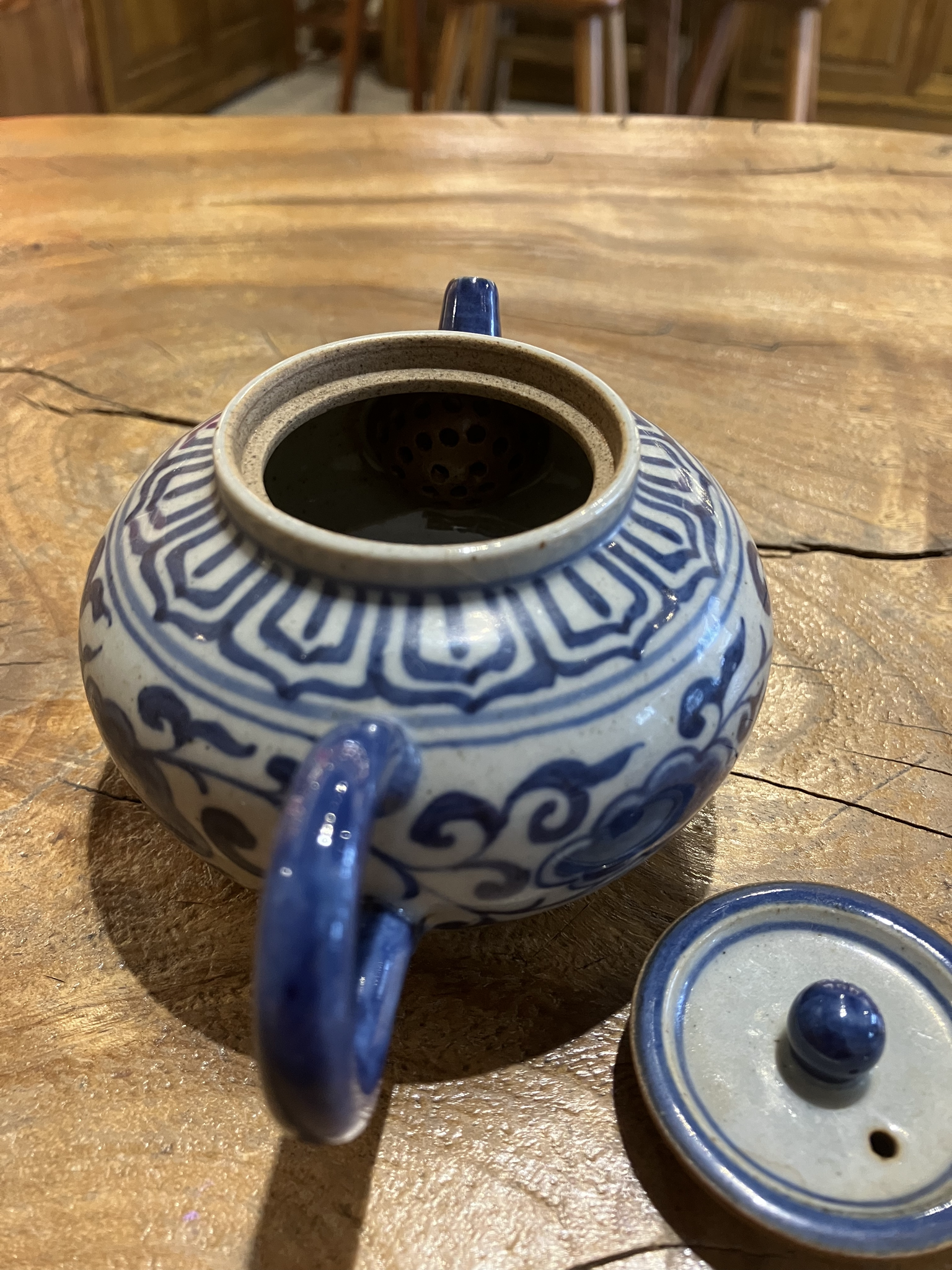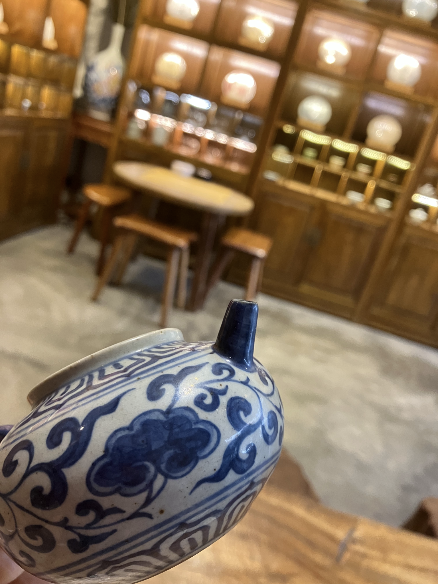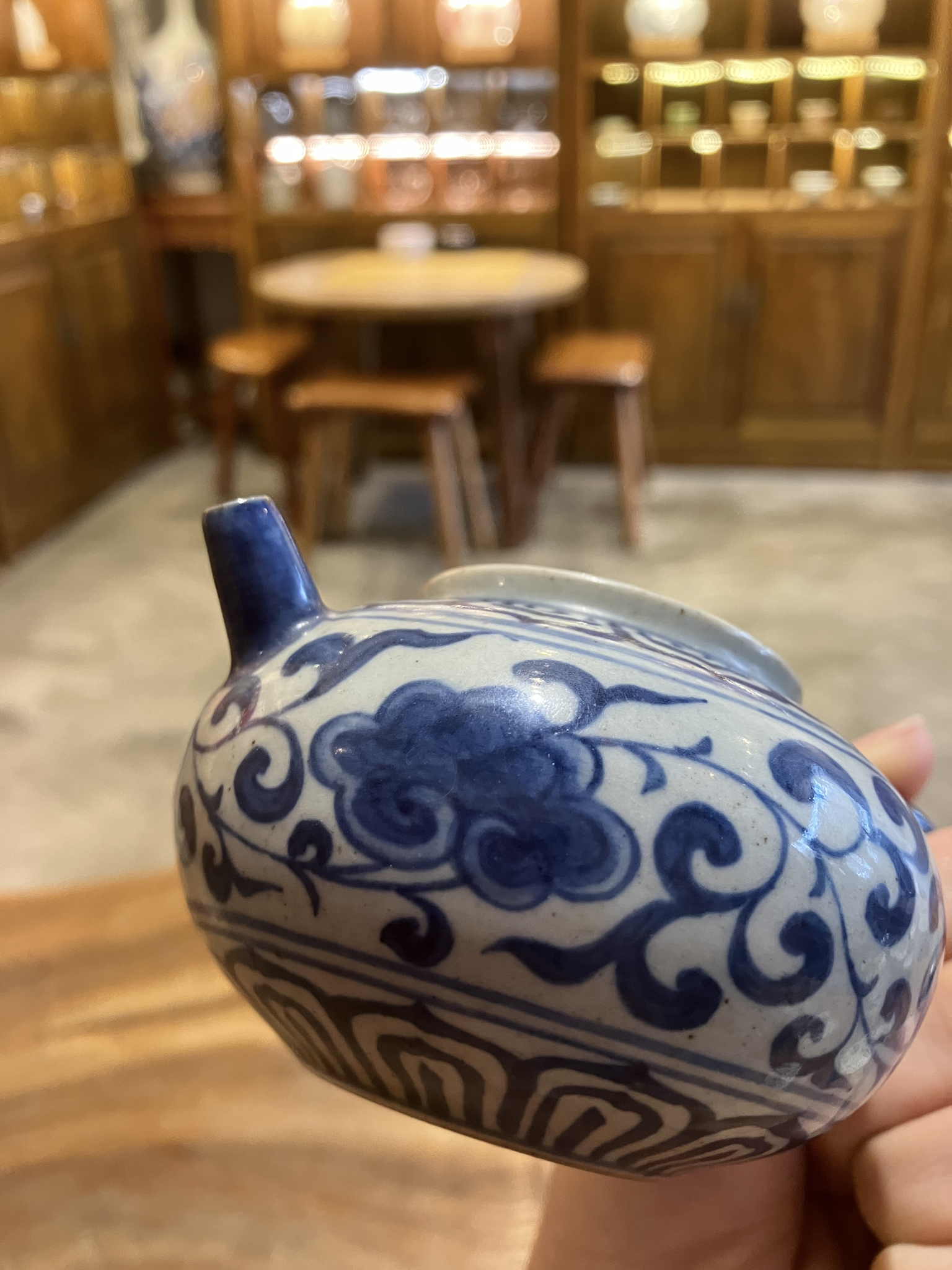 青花陶器茶壺(骨董品風格) 青花陶器茶壺(骨董品風格) (SB-7) 中国江西省景徳鎮で作られた青花茶壺です。作家により成形、絵付け等全て手作業で作られた一点ものになります。 レトロな質感に仕上げています。丸みのある本体に、小さな注ぎ口が可愛らしい。伝統的なハスの花の模様で、よりレトロな雰囲気に。 容量:160ml #この商品は広東省の店舗にて店頭販売もしております。ご購入の時点で在庫切れの場合がございます。お手数ですが、購入手続きに入る前に、お問い合わせフォーム、X、インスタグラムのいずれかから在庫状況をお問い合わせください。 在庫状態 : 在庫有り ¥30,000(税込) 数量